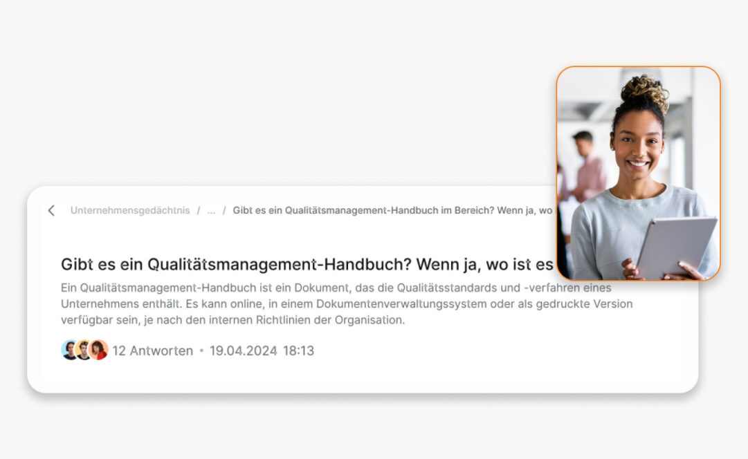 Transform the knowledge in your employees’ heads into a digital corporate memory so that valuable experience is no longer lost.